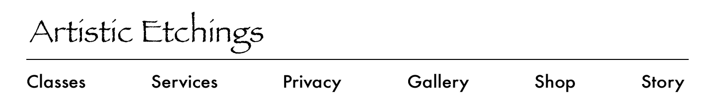 Artistic Etchings Classes Services Privacy Gallery Shop Story Schedule Appointment Bio Contact